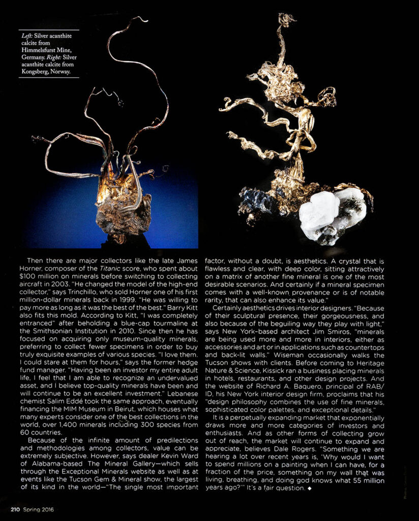 Few things come as spectacularly into being as fine minerals.