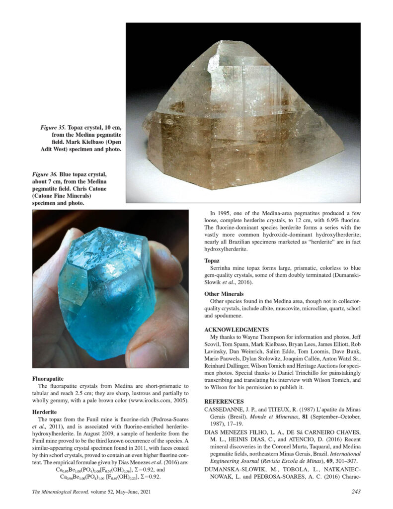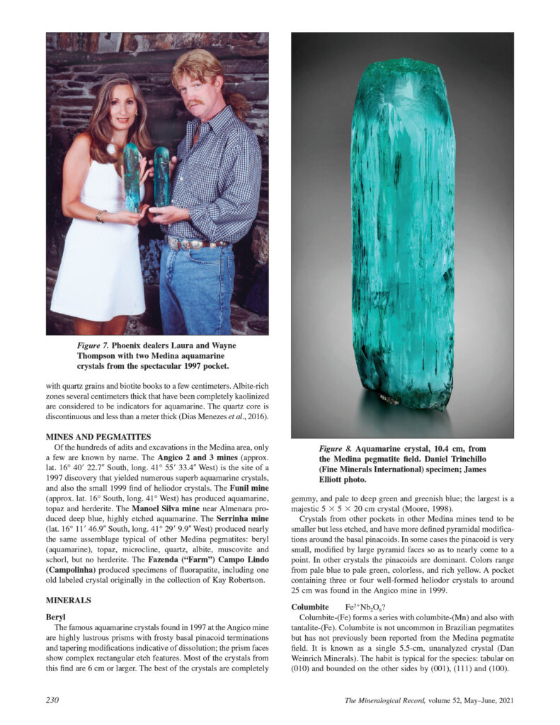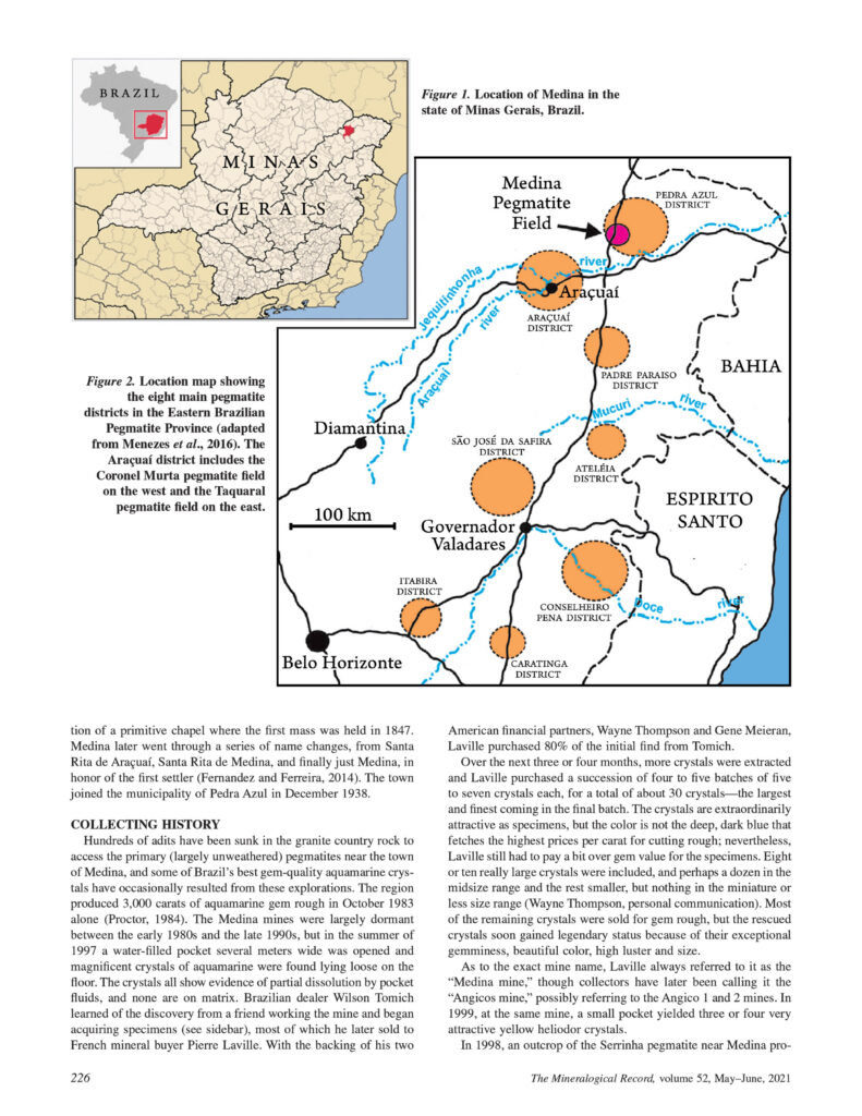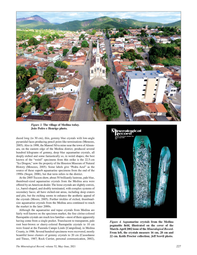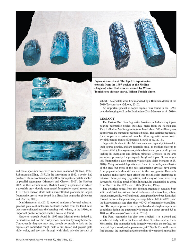 The Medina pegmatites in Minas Gerais, Brazil, are famous for world-class aquamarine crystals.