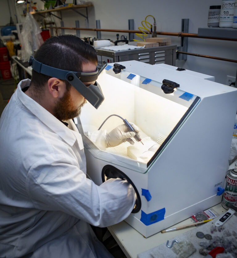 Many of the world’s most celebrated private and museum collections feature specimens prepared and displayed by our team. From custom-molded resin mounts and 3D-printed bases to hand-welded clutch mounts and exclusive lighting systems designed specifically for FMI, we continue to redefine the standards of display. We do not simply meet expectations; we set them, continually raising the bar for how the world’s greatest minerals are seen and experienced.